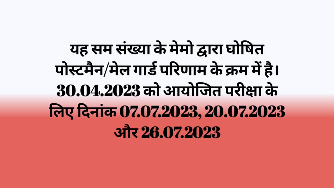 This is in continuation to the Postman/Mail Guard result declared vide memo of even no. dated 07.07.2023, 20.07.2023 & 26.07.2023 for the exam held on 30.04.2023