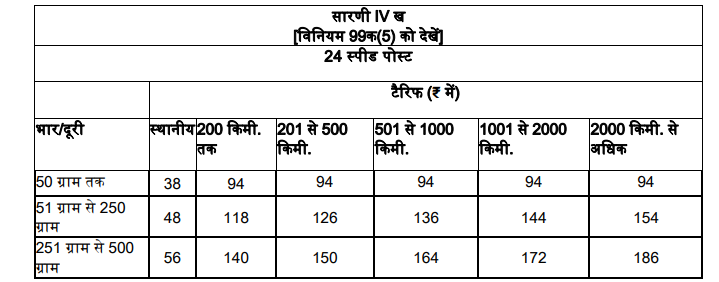 (2) 24 स्पीड पोस्ट पार्सल के भार-स्लैब और उन पर लगने वाला डाक-शुल्क वह होगा जैसा अनुसूची-1 की सारणी IV घ में यथा विनिर्दिष्ट किया गया है।
