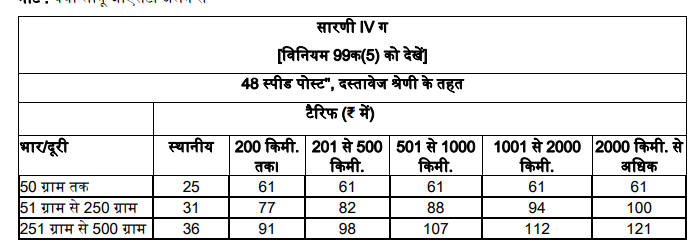 (5) ’24 स्पीड पोस्ट’ और ’48 स्पीड पोस्ट’ पर लागू होने वाले टैरिफ वह होगा जैसा क्रमशः अनुसूची-1 की सारणी IV ख और सारणी IV ग में यथा विनिर्दिष्ट किया गया है।