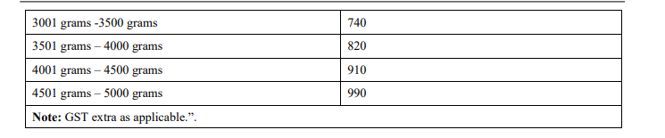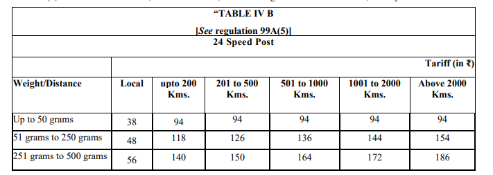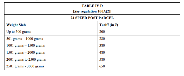 (2) The weight slab and the postage for 24 Speed Post Parcel shall be as specified in Table IV D of Schedule I: