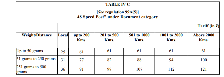 (5) The tariff for 24 Speed Post and 48 Speed Post services shall be as specified in Table IV B and Table IV C of Schedule I, respectively.